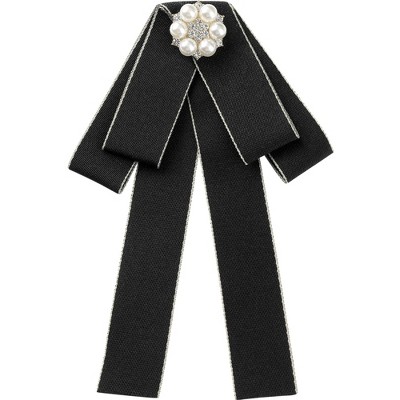 - A round rhinestone decor. This elegant ribbon brooch tie adds a classic retro style to your look