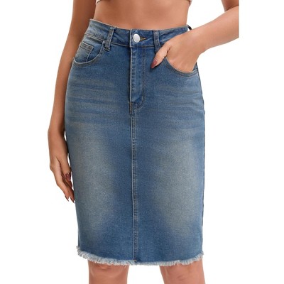 INSPIRE CHIC Women's Ripped Raw Hem High Waisted Stretch Summer Above the Knee Casual Denim Skirts Black Blue Medium