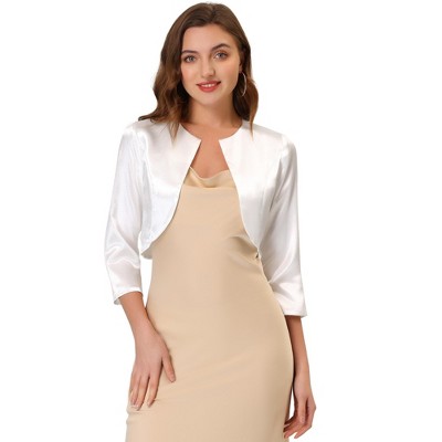 • This cardigan is made up of several design points: Open Front, 3/4 Sleeves, Crop Cardigan, Satin Fabric, Solid Color, Bolero Shrug
