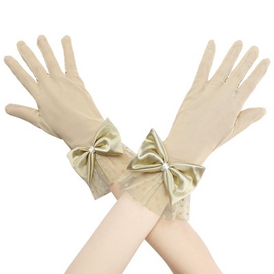 INSPIRE CHIC Women's Satin Faux Pearl Sembellished Full Finger Gloves Champagne One Size