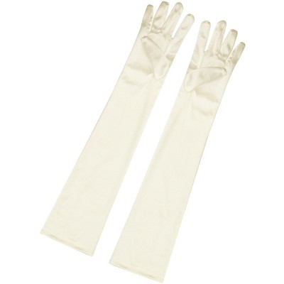 Solid color satin full finger gloves made of polyester. These gloves are soft, lightweight, and breathable, making them ideal for various occasions. The chic and eye-catching design is perfect for weddings, parties, and special events. They offer a comfortable and classic look that pairs well with sleeveless dresses. The non-stretch fabric ensures a smooth fit, allowing for easy movement. Available in various colors including purple, white, pink, blue, light gray, green, gold, red, hot pink, champagne, and black. The package includes one pair of gloves, making them a great accessory for your go-to party ensemble.
