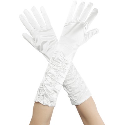 INSPIRE CHIC Women's Satin Opera Length Gloves with Pleats