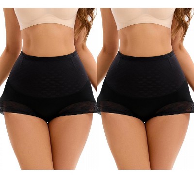 INSPIRE CHIC Women's Seamless Thong Shapewear Tummy Control High Waist Body Shaper Shaping Panties 2 Packs 2 Black Small
