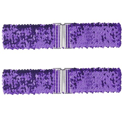 INSPIRE CHIC Women's Shinny Wide Waist Belts Interlock Buckles Sequins Decor Stretchy Belts 2 Pcs 23.62" Black
