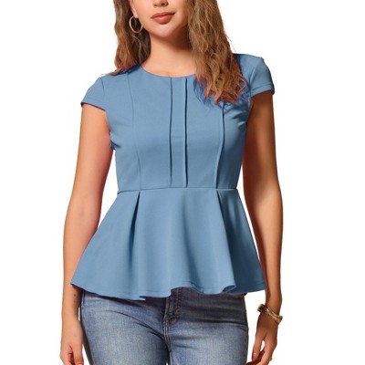 INSPIRE CHIC Women's Short Sleeve Round Neck Stretch Business Classic Peplum Top X-Small Dark Blue