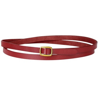INSPIRE CHIC Women's Skinny Faux Leather Adjustable Gold Buckle Slim Waistband Wine Red 55-95cm/21.65-37.4"