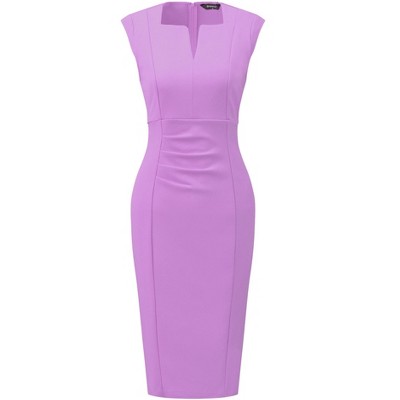 INSPIRE CHIC Women's Sleeveless Choker V Neck Trendy Work Knee Length Pencil Dress Small Pink