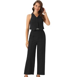 INSPIRE CHIC Women's Sleeveless V-Neck Button Down Back Elastic Wide Leg Pantsuits - 1 of 4