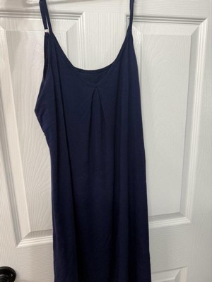 Women's cozy loungewear dress features a V-neck, adjustable spaghetti straps, an A-line silhouette that hits knee length