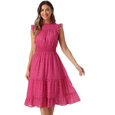INSPIRE CHIC Women's Slim Fit Gilding Shiny Ribbed Tank Tops Bodysuit Hot Pink Small