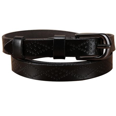 - Black(with embossed), black(without embossed), white, wine red, camel, beige. A must-have fashion belt in every girl's wardrobe