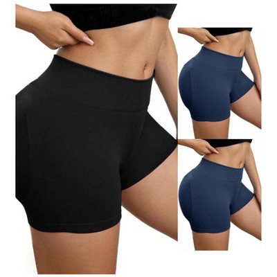 INSPIRE CHIC Women's Slimming Waist Butt Lifter Control Panties Workout Sport Running Shaper Short 2 Packs 1 Blue+1 Khaki Medium