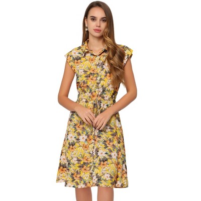 Floral Print, Above Knee Length, Short Tulip Sleeve, Tie Waist, Faux Wrap Dress, V-neck, Ruffled Hem