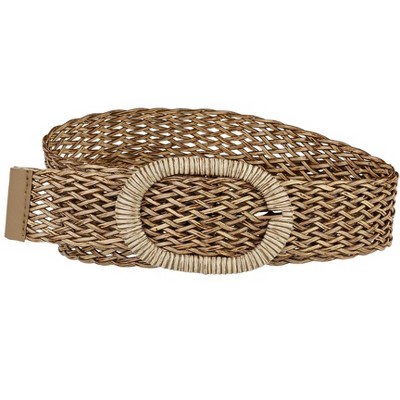INSPIRE CHIC Women's Straw Woven Elastic Stretch Boho Braided Wide Belt Apricot Maximum Waist:130.0cm/51.2"