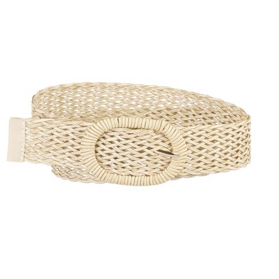 INSPIRE CHIC Women's Stretchy Dress Square Buckle Adjustable Wide Braided Waist Belts Beige 60-75cm/23.62-29.53"