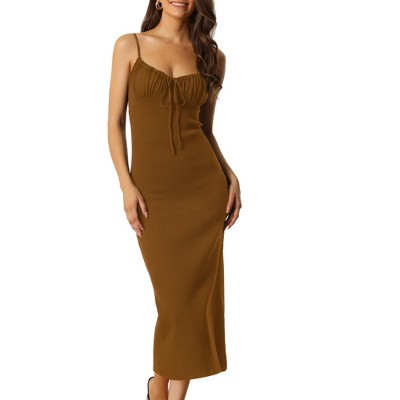 INSPIRE CHIC Women's Striped Ribbed Short Sleeve Midi Basic Knitted Dresses Medium Dark Khaki