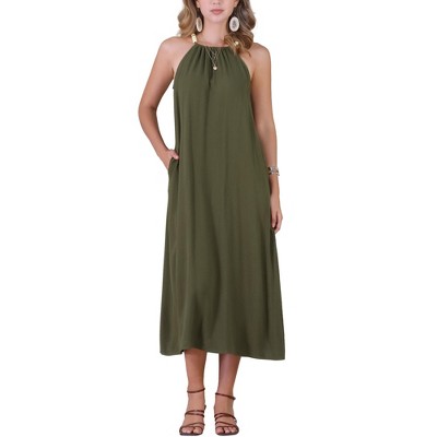 The Summer Linen Dress is designed for women's casual and chic fashion needs. Its sleeveless design offers a sleek silhouette perfect for warm weather. Crafted from a blend of cotton, linen, and polyester, the dress ensures comfort and durability. The V-neck and button-down features add a touch of elegance, while the loose fit provides ease of movement. Ideal for occasions such as travel, beach outings, or casual gatherings, this dress can be effortlessly styled with a leather jacket and ankle boots for an edgier look. Perfect for transitioning from day to night, this dress is a versatile addition to any wardrobe.