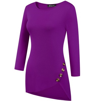INSPIRE CHIC Women's Summer Round Neck Short Sleeve Rhinestone Decor Blouse Light Purple Small