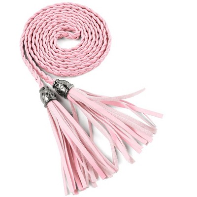 INSPIRE CHIC Women's Tassels Braided Waist Self Tie Woven Skinny Belts Black & Red 132cm/52"