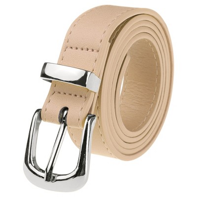 This women's belt is made of durable PU material, featuring a stylish pearl metal buckle. The belt is available in black and beige colors with a total length of 65cm and a width of 1.3cm. It is designed to complement a variety of outfits including trousers skirts and dresses making it a versatile addition to your wardrobe. The practical design allows for easy wear and removal making it a perfect accessory for daily use.