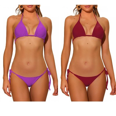 • 2 pieces, leopard print, tie shoulder bikini triangle top, removable padded cups, bandeau, no steel ring, high cut triangle bottom, stretchy fabric, quick dry
