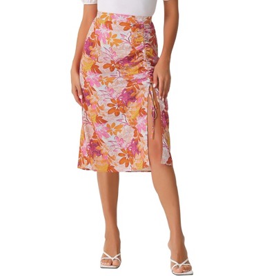 INSPIRE CHIC Women's Tropical Floral Print Ruffle Self-Tie Knot Split Beach Wrap Midi Skirt X-Large White Pink