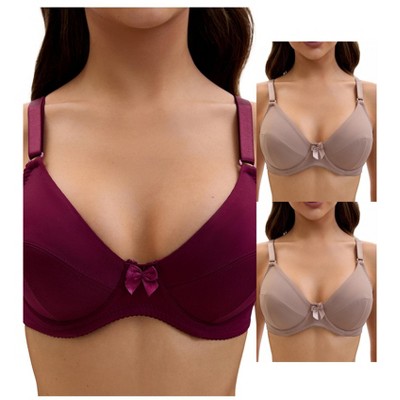 INSPIRE CHIC Women's V Neck Back Hook Adjustable Strap Bow Decor Front Underwire Push-Up Bras 2 Packs