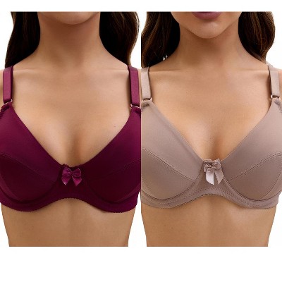 INSPIRE CHIC Women's V Neck Back Hook Adjustable Strap Bow Decor Front Underwire Push-Up Bras 2 Packs