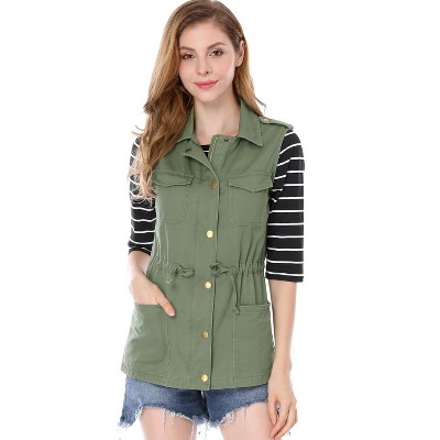 INSPIRE CHIC Women's V Neck Faux Suede Button Down Side Pockets Sleeveless Vest Large Army Green