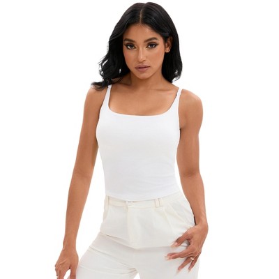 INSPIRE CHIC Women's V-Neck Spaghetti Straps Slim Fit Solid Elastic Athletic Camisoles Small White