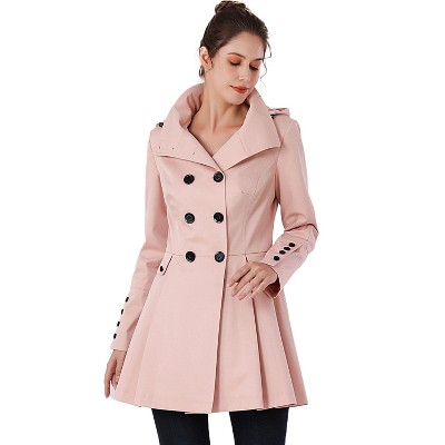 INSPIRE CHIC Women's Velvet A-Line Steampunk Double Breasted Winter Trench Coats X-Small Pink