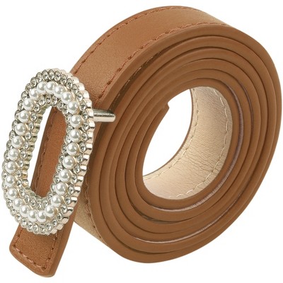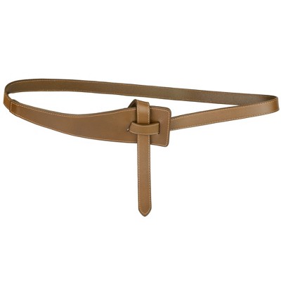 INSPIRE CHIC Women's Vintage Elegant Pinless Smooth Buckle Silver Circle Casual Belt Brown 103x3cm/40.6x1.2"