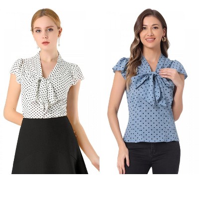 INSPIRE CHIC Women's Vintage Polka Dots Peter Pan Collar Puff Short Sleeve Shirt 2 Packs - 2 of 4INSPIRE CHIC Women's Vintage Polka Dots Peter Pan Collar Puff Short Sleeve Shirt 2 Packs - 3 of 4INSPIRE CHIC Women's Vintage Polka Dots Peter Pan Collar Puff Short Sleeve Shirt 2 Packs - 4 of 4