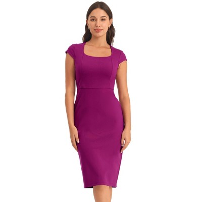 INSPIRE CHIC Women's Vintage Sweetheart Neck Sheath Dresses with Belt Purple Large