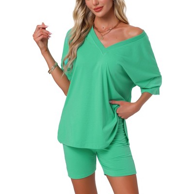 • Pajamas Tops features a pullover top with a flattering v-neckline. Shorts High Waist, Adjustable drawstring shorts with pockets. Loose Fit designs made everyday casual and comfy