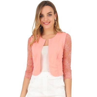 • Floral Lace Panel, 3/4 Sleeve with Lace Design, Open Front, Crop Cardigan, Crop Shrug