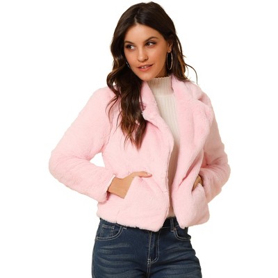 INSPIRE CHIC Women's Winter Open Front Short Faux Fur Jacket Small Dusty Pink