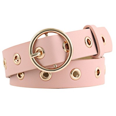 INSPIRE CHIC Womens Grommet Belt Faux Leather Single Pin Buckle Punk Belts for Jeans Pants Black & Pink 104cm/40.94"