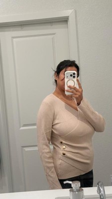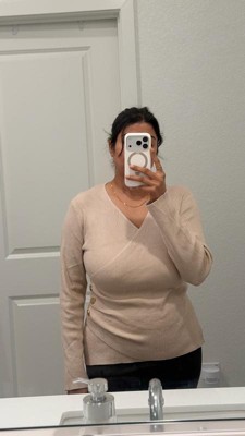 INSPIRE CHIC Womens Maternity Sweater Nursing Wrap Long Sleeve Tops Crossover Button Stretch Ruched Breastfeeding Blouses Small Apricot