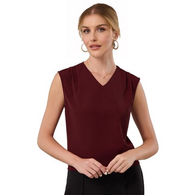 Keep your look stylish in this casual top featuring a V neck sleeveless pleated front and lightweight fabric. Pair with pencil skirts or suit pants for an elegant office look. Comfortable and versatile this top perfect on its own or as a layer under a blazer. Focused on Ladies Semi-Formal Wear this shirt can be a perfect addition to almost any outfit from formal to daily wear great for work meeting office casual daily dressing etc.