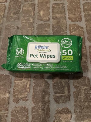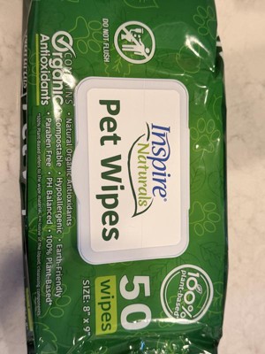 Inspire Naturals Pet Wipes for Dogs and Cats 100% Natural Plant Based with Organic Antioxidants, Dog Wipes/Cat Wipes Puppy Wipes (2 Packs of 50)