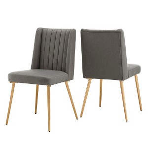 A uniquely modern look and feel is easier to obtain than ever thanks to the Jose Gold Finish Dark Gray Fabric Dining Chair by iNSPIRE Q Modern. Sit back and relax in comfort with the plush, soft touch fabric. A fresh take on 70s home décor, these seats feature a unique fin-shaped detail on the backrest for added flair. Gold legs add a subtle bold statement to this piece to compliment well with a minimalistic layout.
