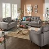 - Gray microfiber upholstery offers a versatile palette for your decorative preferences.