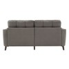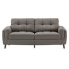 With a clean, modern style and neutral color, the 83" Wide Microfiber Arm Sofa is perfect for any home. Segmented stitch tufting provides visual contrast to the plush, subtly contoured framing of the sofa's front. Gray upholstery provides a versatile palette for your decorative preferences. The solid wood and plywood frame is foam padded over pocket coils for comfort. Polished microfiber upholstery with reversible back and attached seat cushions provide lasting use. Exposed wood feet with espresso finish complete this piece. Tufted detail on the arm offers an added touch of elegance.
