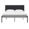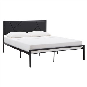 This Metal Platform Bed with Geometric Headboard is the bed your room has been waiting for. It features a streamlined contemporary design that will look great in any space and a sturdily crafted iron frame for durability. The headboard is made of PVC with foam padding for comfort and to help you drift off to dreamland. All you need to do is lay your mattress on top of the sturdy metal slatted frame, and you're good to go!