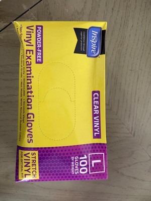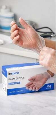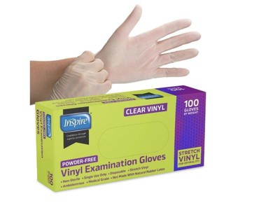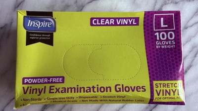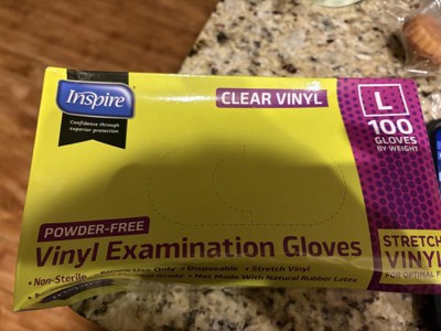 Inspire Exam Medical Gloves Clear Vinyl Gloves Work well. I was happy to try these for quick recovery things like handling raw proteins and other things you would like to keep your hands cleaner. I wouldn’t use them for long projects but shorter ones they work well.