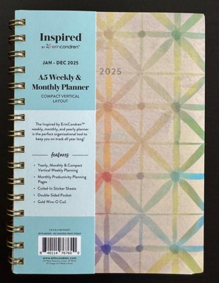 Inspired by Erin Condren 2025 Weekly/Monthly Planner 8.3"x6" Watercolor Painted Print: Spiral Binding, Adult Stationery