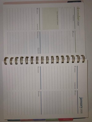 Love it, however it seems to be missing some pages/days to write on - the pages with lines where you can write out items - usually the page with the month tab on it. Not every month is like this, but several are. For example a page has January 23-26, and when you turn the page you would expect it to continue with January 27 but instead it’s the calendar for February. Not enough of an issue to cause me to return it, but it’s still frustrating. Otherwise I like it.
