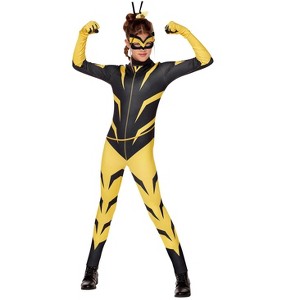 She may look like Queen Bee but she's so much more! With the help of this costume you can dress up like Vesperia, the new hero from Miraculous Ladybug! This fun costume will impress Miraculous fans everywhere. When you wear this costume it will feel like you have Vesperia's superpowers of super speed, strength, and venom. It's a great costume for Halloween, themed birthdays, and comic conventions!