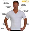 Choose one size larger: If it is your first time to wear compression clothing, it is a safer option to choose a compression shirt that has a larger size so that you will not feel like being squeezed while wearing the shirt. A good rule of thumb is that you should just be able to slide your hand under it without strain. Wearing a compression garment too tight can also cause it to roll down. The garment should lay smooth and flat across your skin.Elevate your style and confidence with the shapewear V-neck T-shirt by Insta Slim. This unique short-sleeved compression T-shirt, featuring a 12-inch right-side zipper for easy on and off, is perfect for any occasion. High-compression V-neck crafted from non-clingy 4-way stretch fabric is designed to slim and trim your upper torso, eliminate love handles, firm and tone the chest, and provide great back support. Discreet fit can be worn as a base layer or a standalone piece.